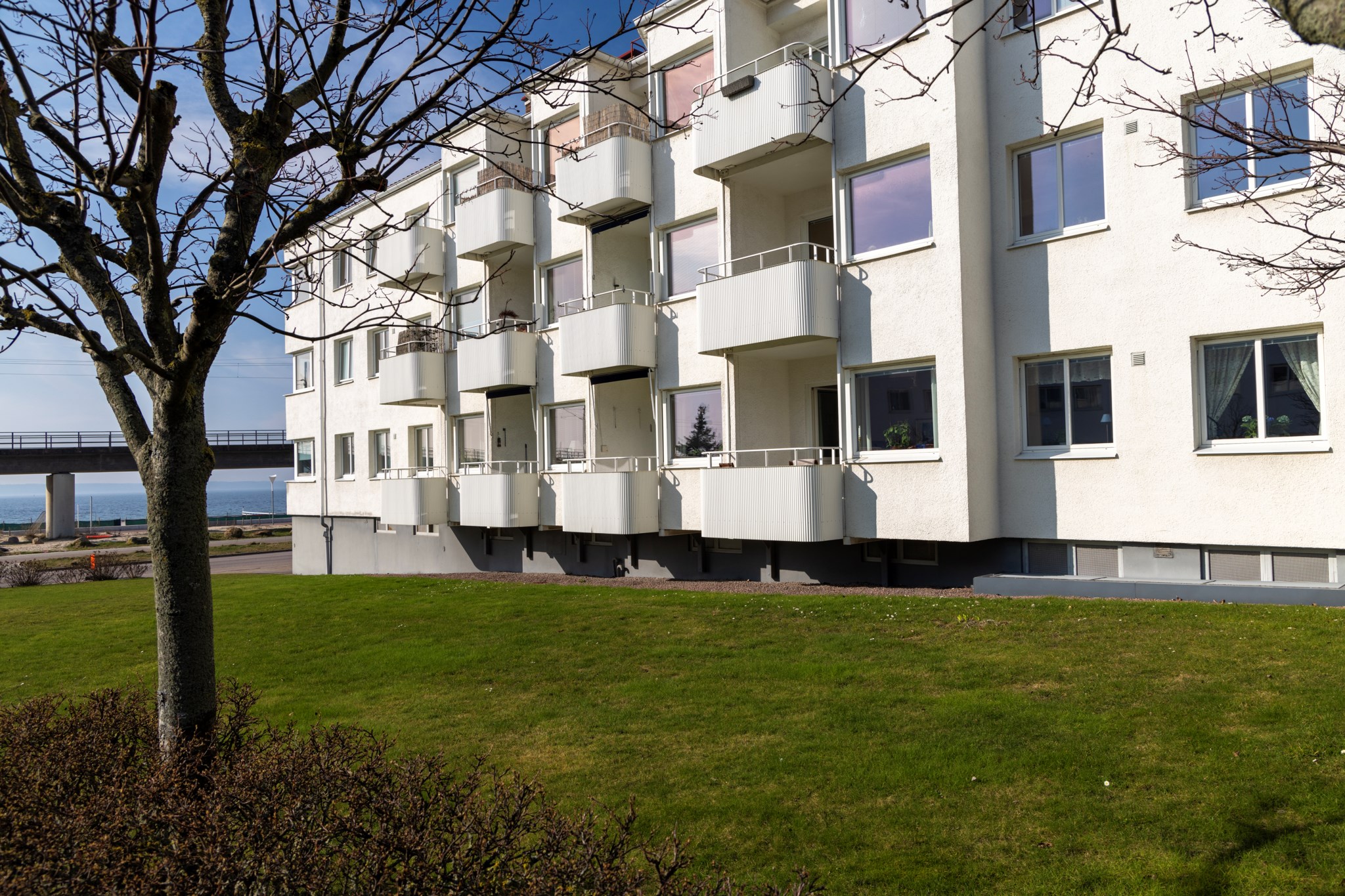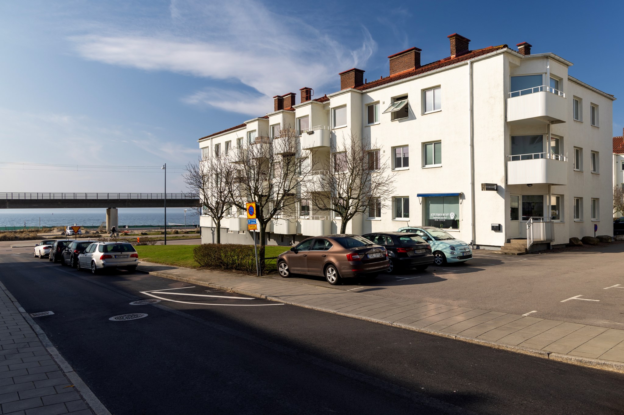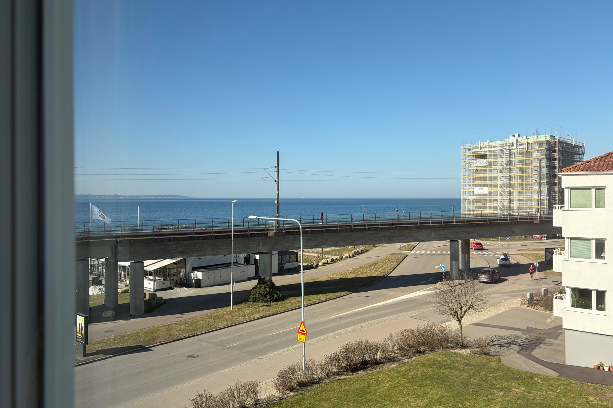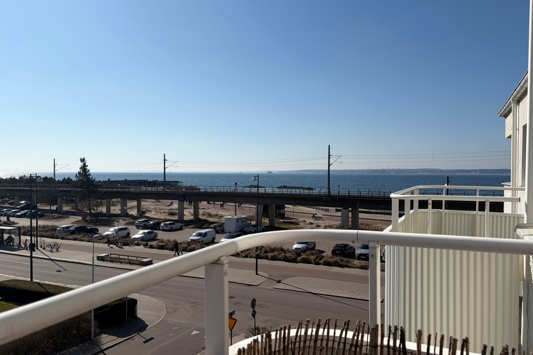 Funkishusen precis norr om Hamilton vid Fria bad är såväl ett stycke byggnadshistoria som ett attraktivt och strandnära boendealternativ. Flertalet av lägenheterna är mindre, men inte denna. Här har ni även som en familj med två barn möjligheten till ett boende med strandlivet utanför dörren och en livskvalitet med underbar utsikt till ett överkomligt pris! Det finns möjlighet att ha tre rejäla sovrum utan att göra avkall på sällskapsytorna och dessutom finns två toaletter med dusch i båda. Från både matrum och vardagsrum finns det också access till härliga balkonger i söderläge. Här kan man sitta och betrakta båtarna som rör sig över sundet, se alla människor som lockas av långa promenader längst strandpromenaden vid fint väder och höra vågornas brus när det närmar sig kväll. Översta våningsplanet medger också grillning om man vill det.