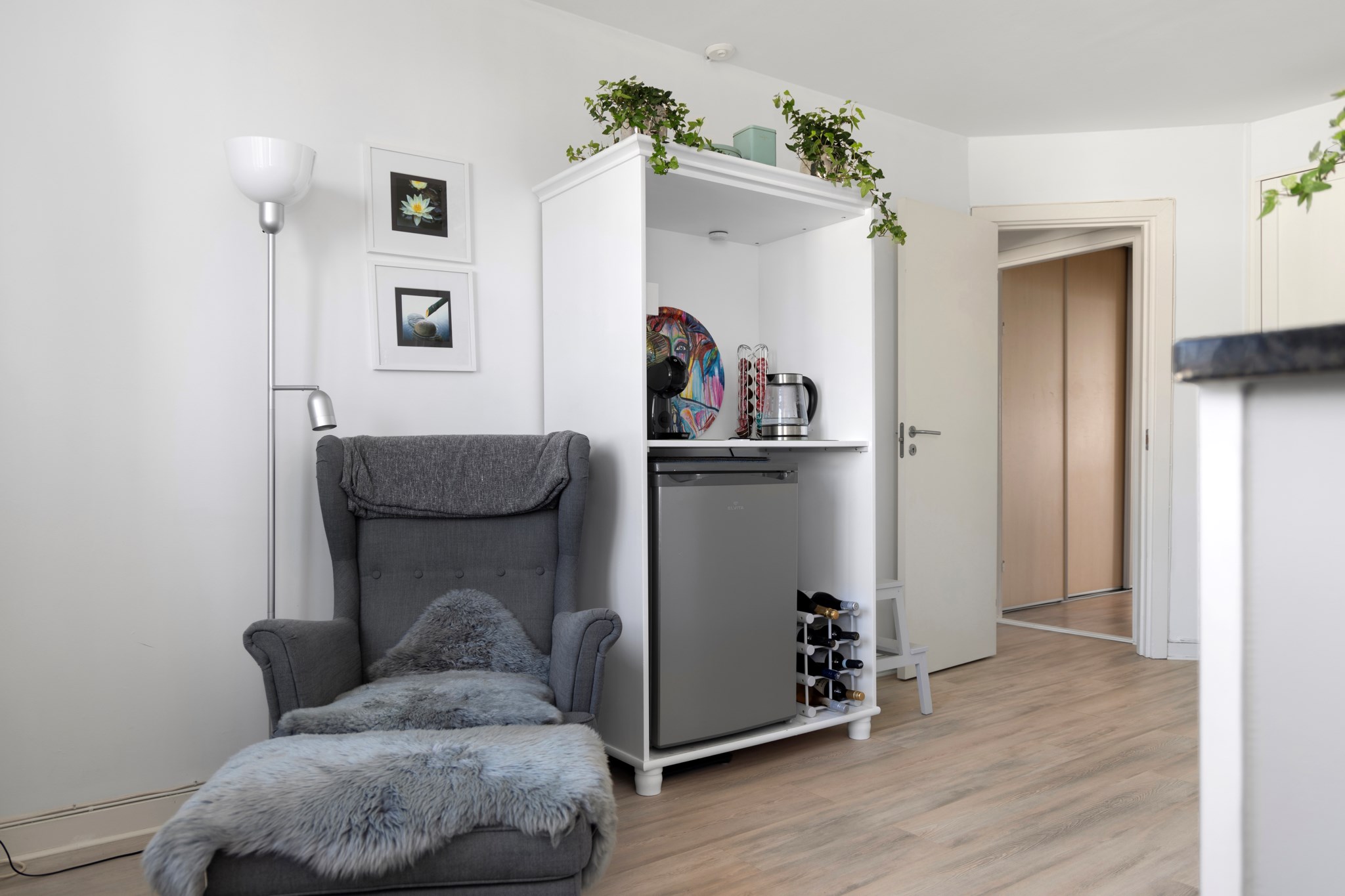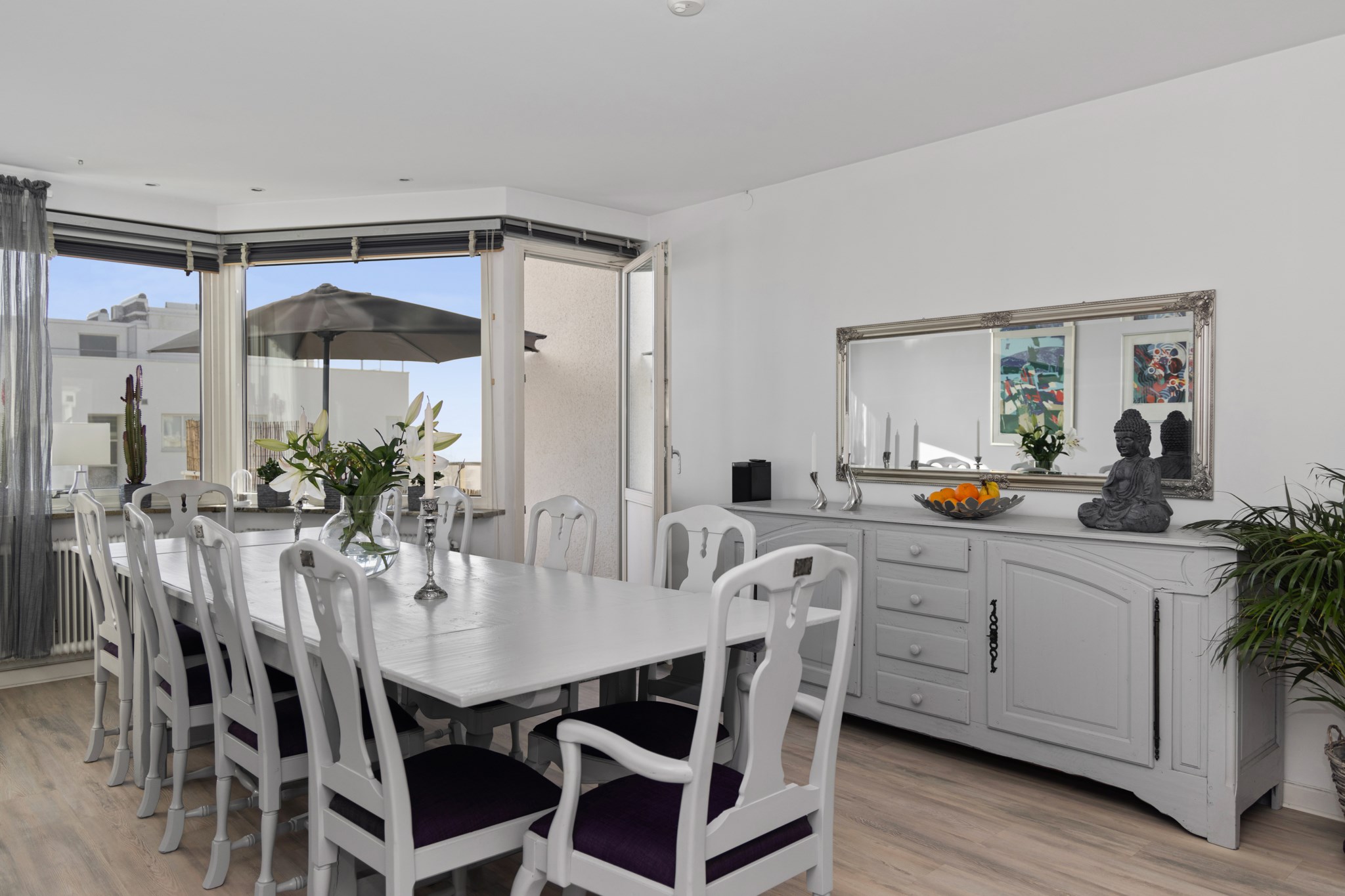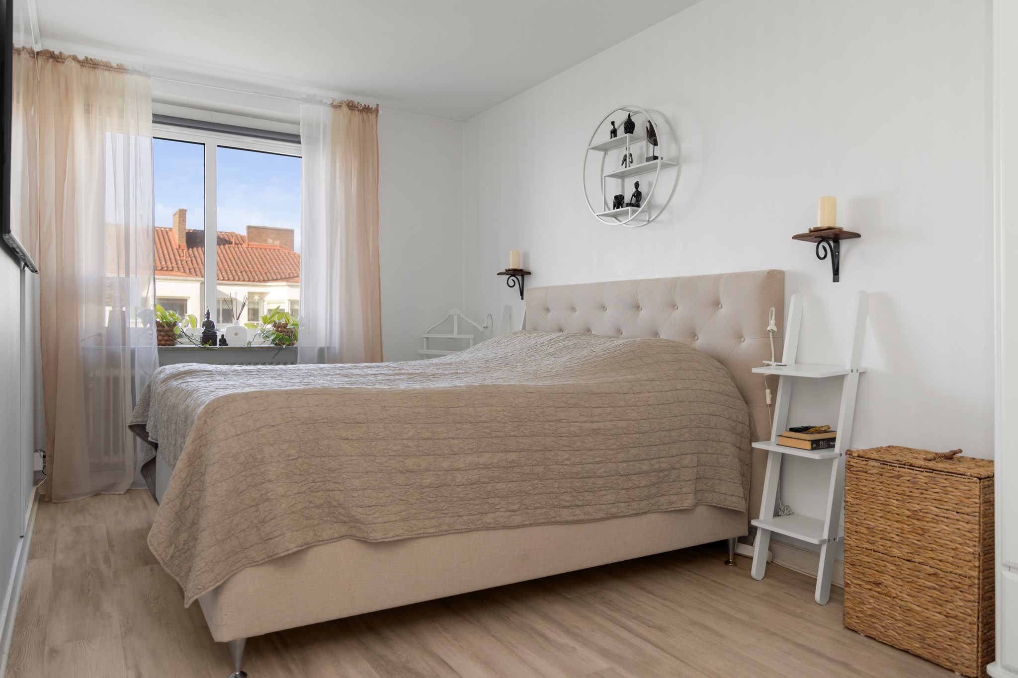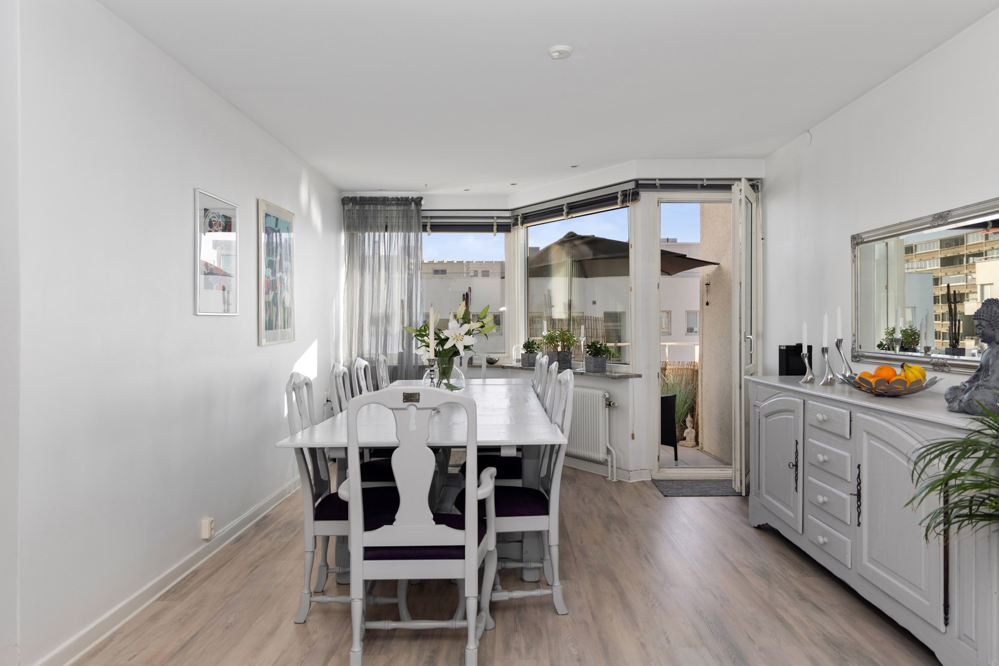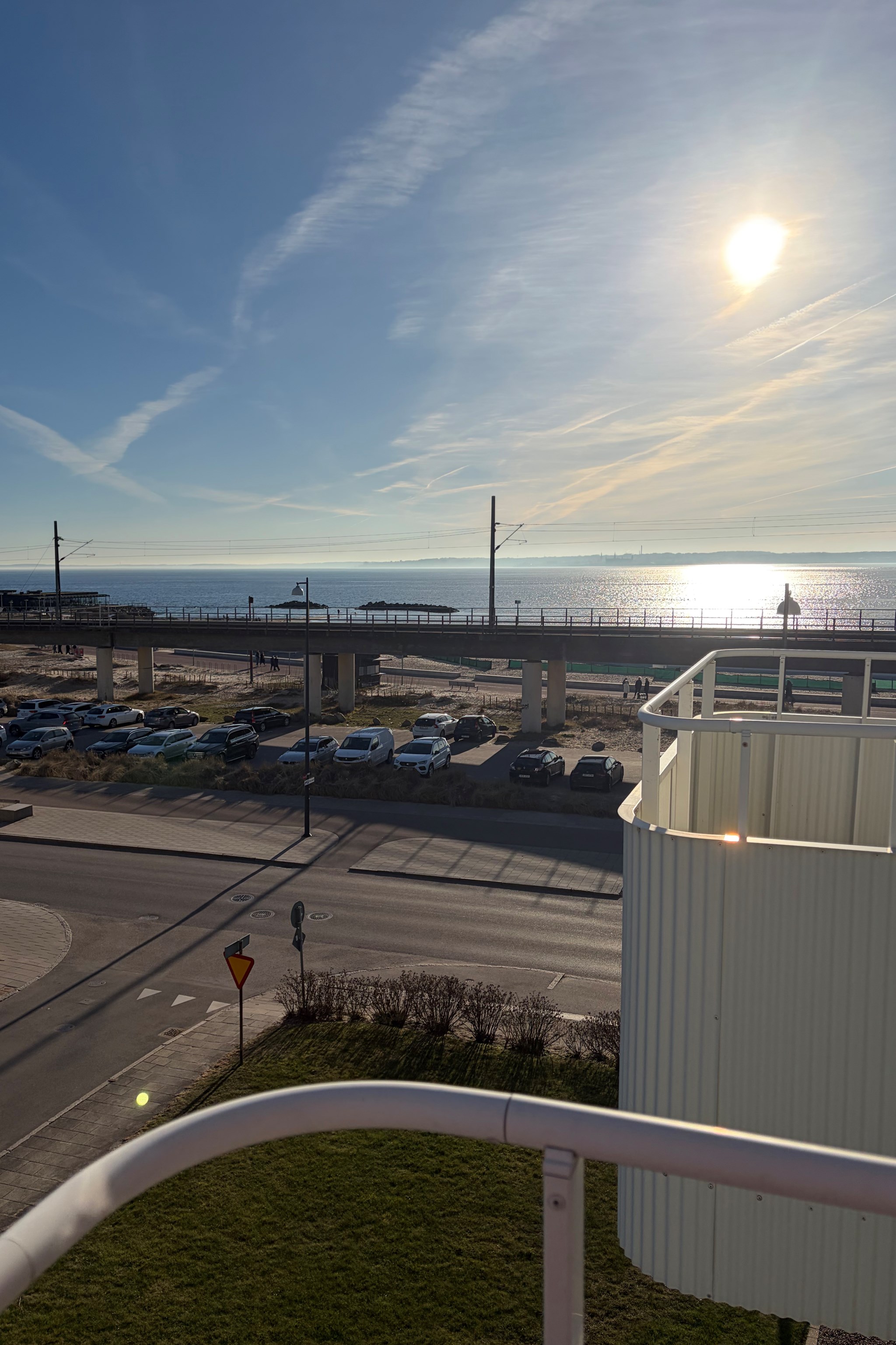 Funkishusen precis norr om Hamilton vid Fria bad är såväl ett stycke byggnadshistoria som ett attraktivt och strandnära boendealternativ. Flertalet av lägenheterna är mindre, men inte denna. Här har ni även som en familj med två barn möjligheten till ett boende med strandlivet utanför dörren och en livskvalitet med underbar utsikt till ett överkomligt pris! Det finns möjlighet att ha tre rejäla sovrum utan att göra avkall på sällskapsytorna och dessutom finns två toaletter med dusch i båda. Från både matrum och vardagsrum finns det också access till härliga balkonger i söderläge. Här kan man sitta och betrakta båtarna som rör sig över sundet, se alla människor som lockas av långa promenader längst strandpromenaden vid fint väder och höra vågornas brus när det närmar sig kväll. Översta våningsplanet medger också grillning om man vill det.