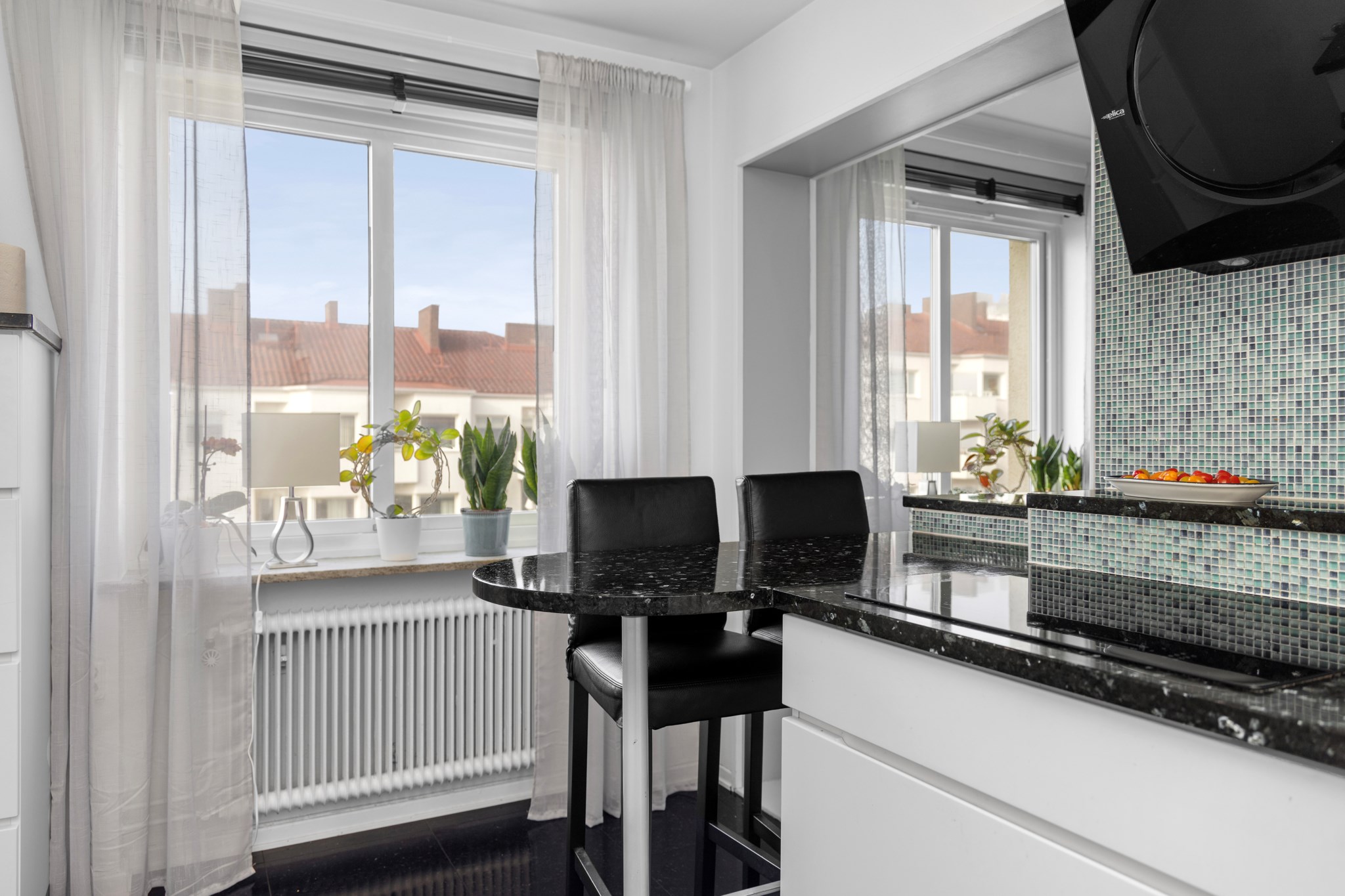 Härlig och ljus femrummare med två balkonger belägen högst upp i funkishus från 1943 endast 75 meter från Fria bads härliga stränder! Här kan ni möta våren och den annalkande sommaren nästan från första parkett.