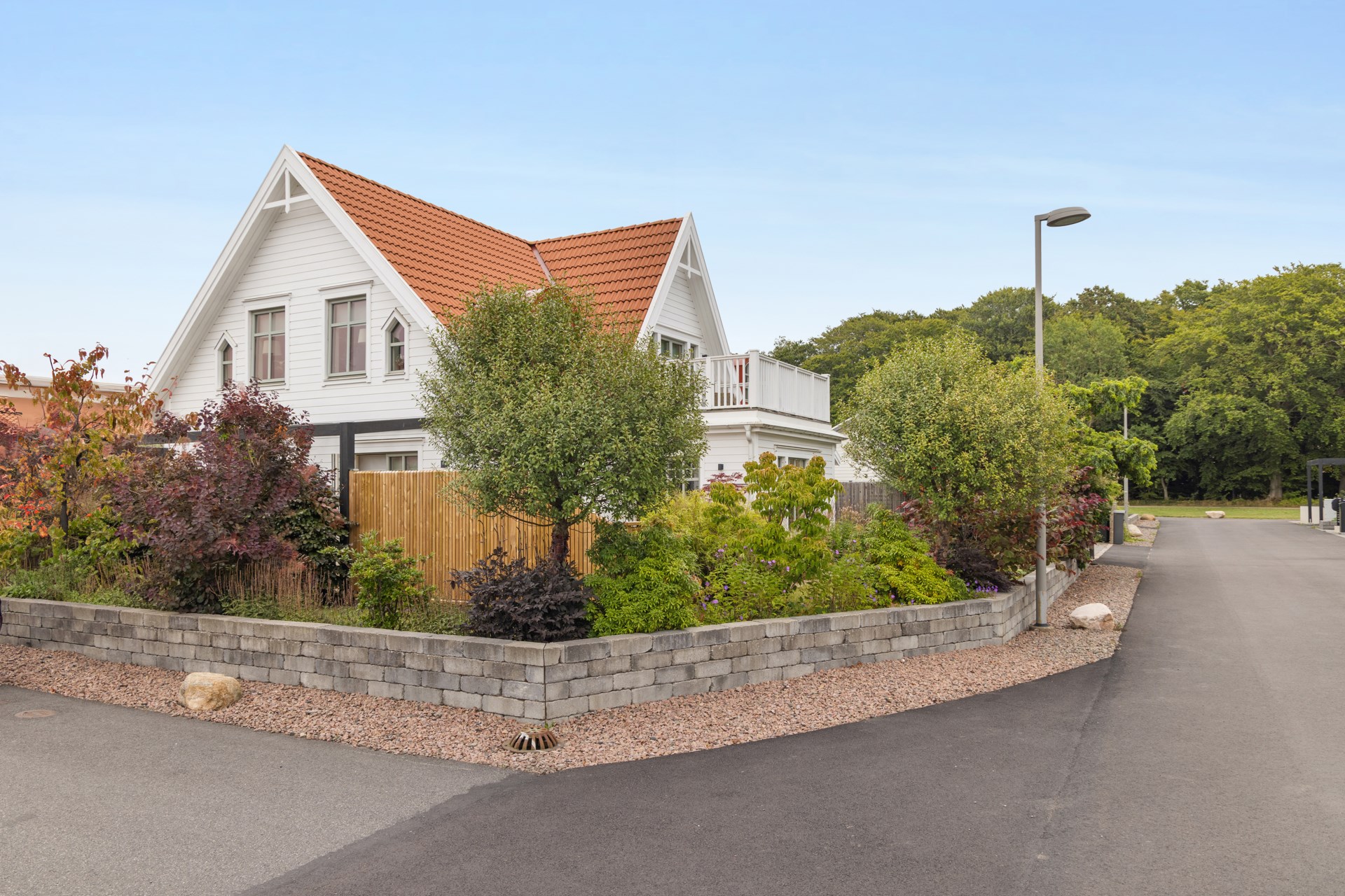 Här erbjuds en friliggande villa om 1 ½ plan med spännande arkitektur i en attraktiv del av Rydebäck - Fortunaterrassen.